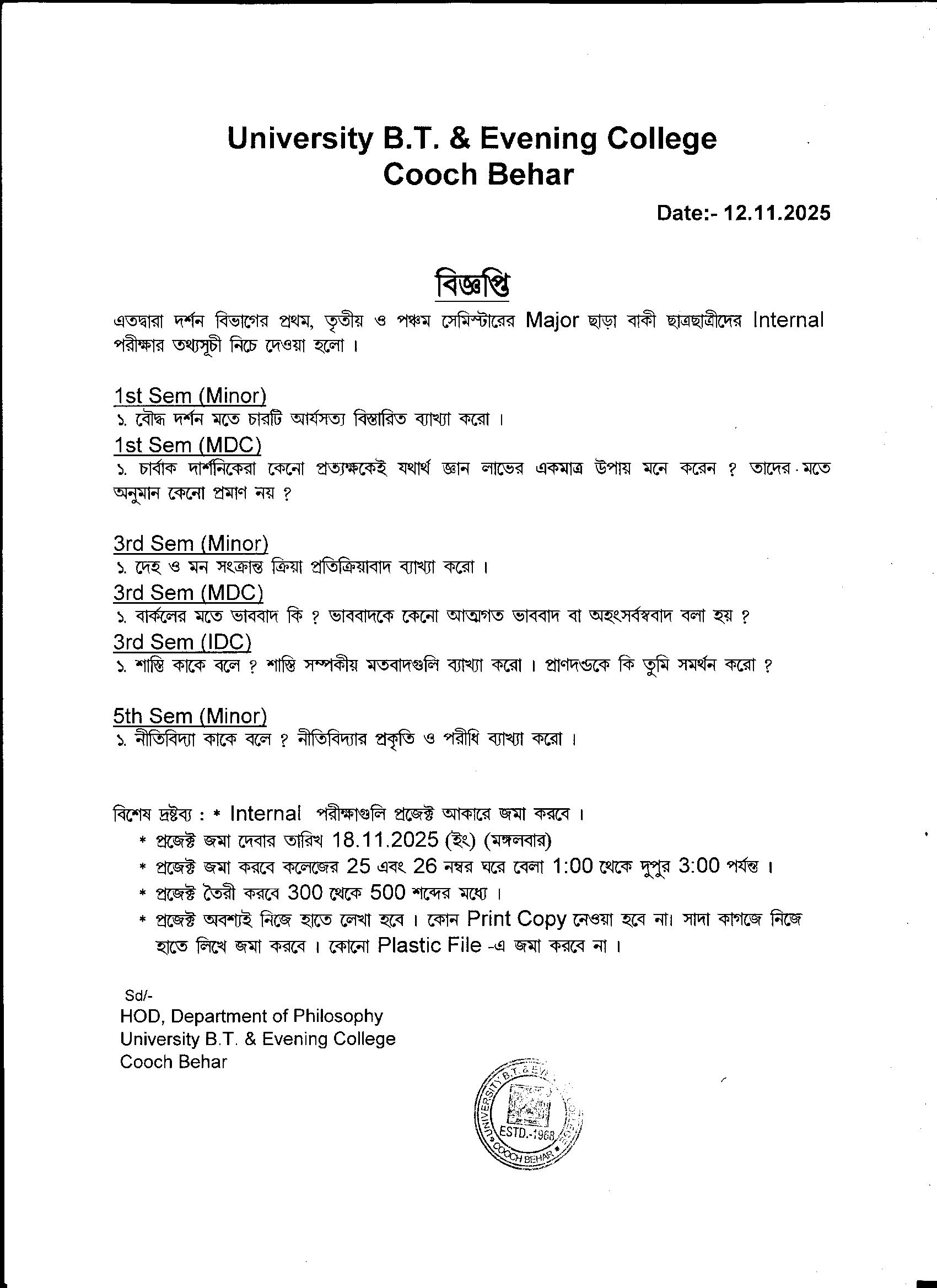 Notice for 1st 3rd & 5th Sem Philosophy Internal Examination 11/7/2025 12:00:00 AM