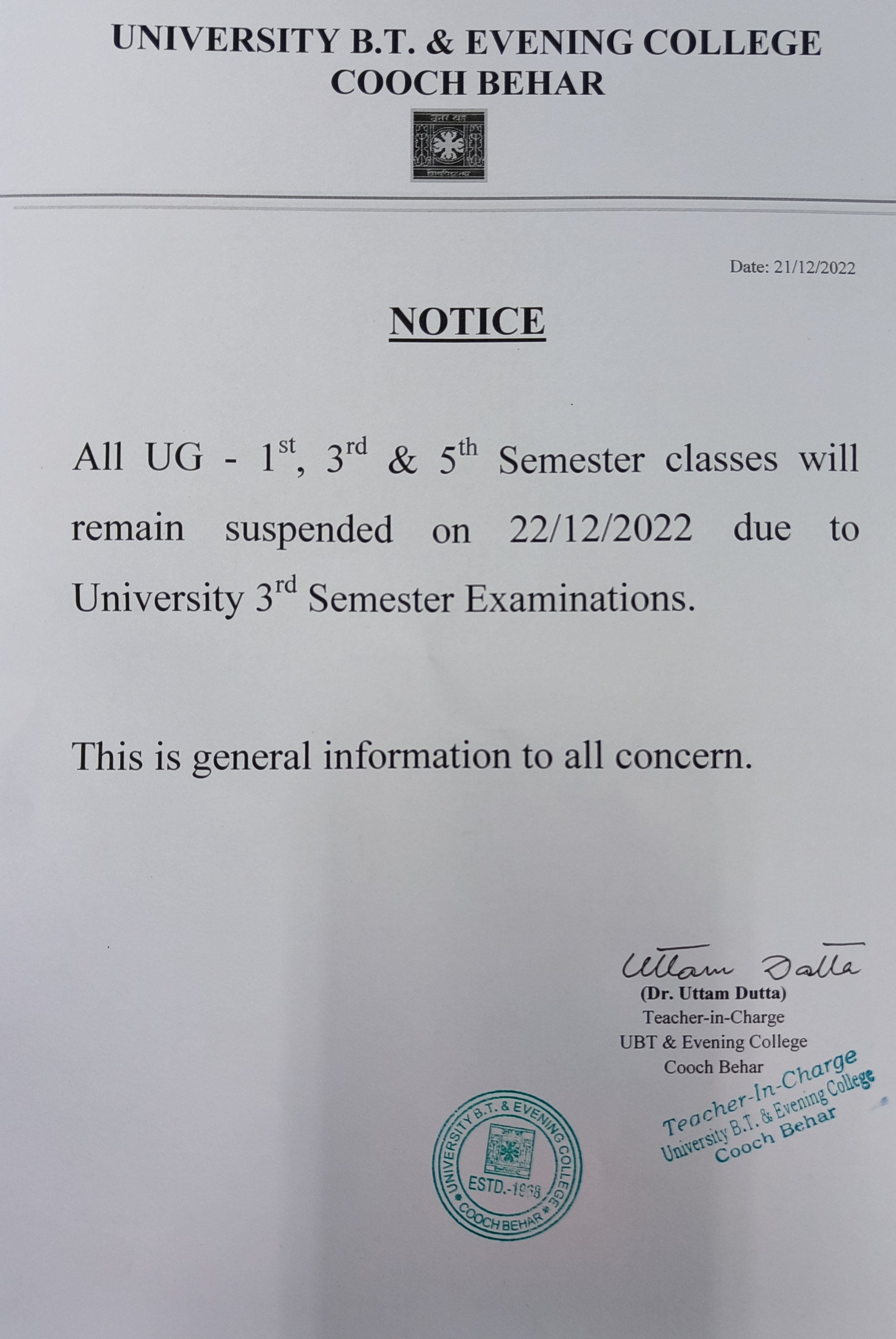 Urgent Notice for 1st, 3rd & 5th Semester Students 1/15/2022 12:00:00 AM